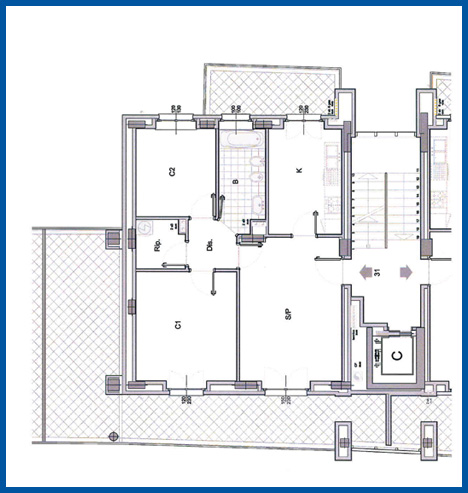 Soggiorno, cucina, n°2 camere, bagno e ripostiglio (con costo aggiuntivo possibilità del 2° bagno)